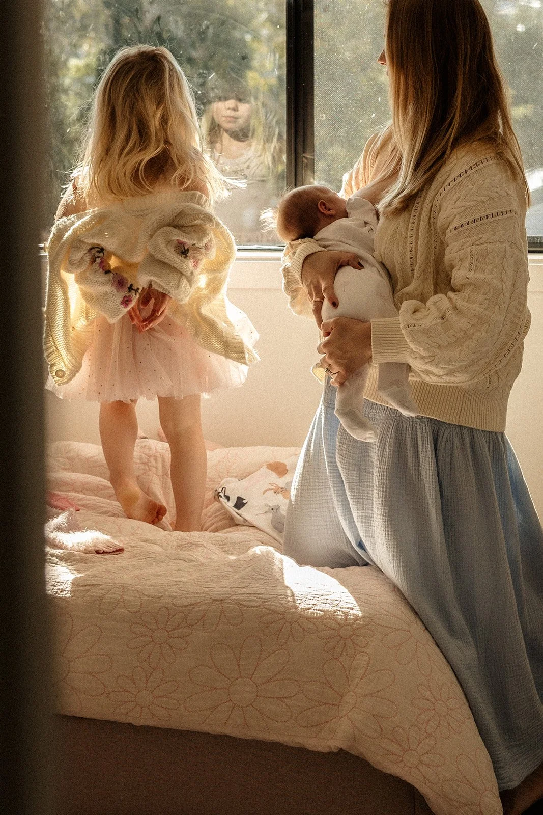 The way you hold their face in your hands, the way they tuck into your chest, slow mornings in the kitchen, milk-drunk cuddles, bath time giggles, sunlight through the hallway, washing swaying in the yard.